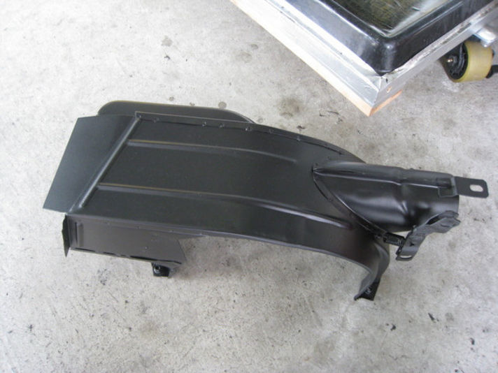 エンジンの補記類がつき、マフラーやカバーヒートエクスチェンジャー装着です。プチレストアしてお色直しした黒く綺麗なパーツが付きました。