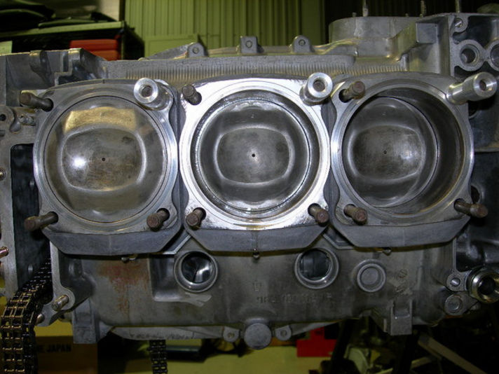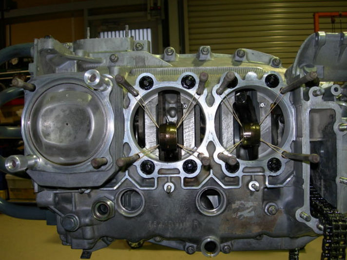 洗浄したピストン シリンダー リングなどをクランクケースに組み付け