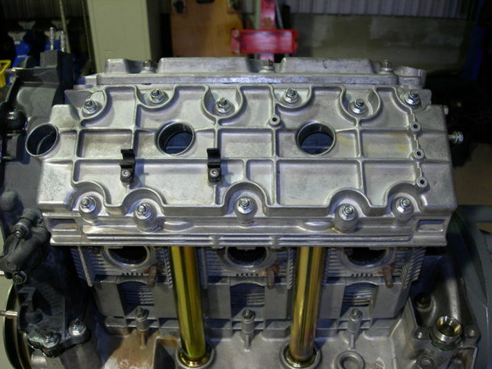 ヘッドの上にカムハウジングを載せて ロッカを組み込みカムシャフトを入れてカムギャーを取り付け バルタイを計りカバーをはめ込み