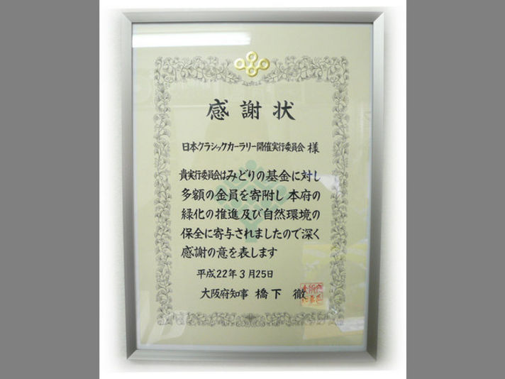 ●大阪府橋下知事から感謝状 日本クラシックカーラリー
