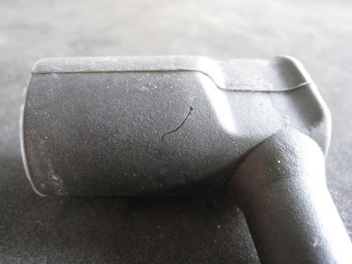 スパークプラグコードのキャップに亀裂が・・・高電圧の電気が雷の様に時々リークしていました!確実に流れていなかったようです。
