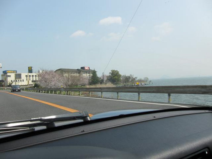 琵琶湖沿いには桜の木が満開です.....