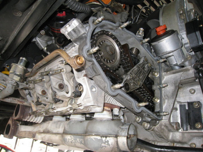 カムカバ-を外し、ガスケット交換の前に機械式のタペット、バルブクリアランス調整をしていきます。オイルパイプラインのOリング交換テンショナーブラケットがスケット交換しました!”クレヨンいとう”