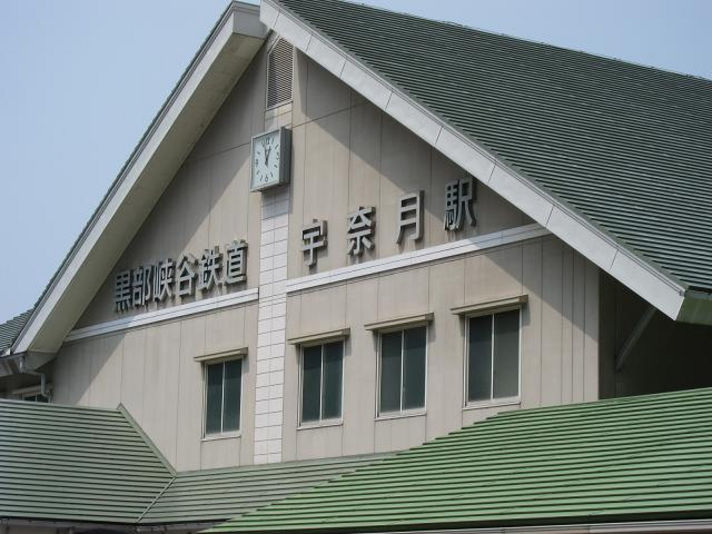 右の写真は黒部峡谷トロッコ列車に乗るために、宇奈月駅に到着したところです。