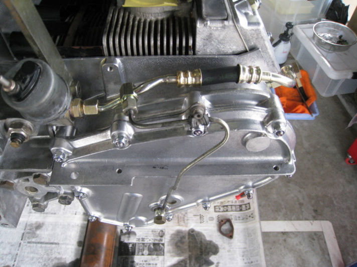 カムシャフトやチェーンテンショナーへオイルを供給するパイプです。