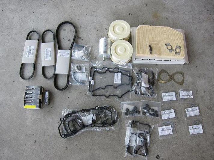 タイプ993なのでベルト三本、プラグ12本、燃料フィルター、エアコンフィルター2個、エアフィルター、チェーンケースパッキン(左右)、タベットカバーパッキン(左右)、マフラーガスケット等最低限度交換する物があります。