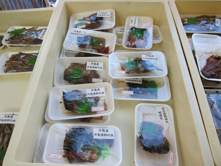 その中で私が注目したお店が真ん中の写真のものです。 沖島から来た漁師さんとその奥さんが、とれたてのあゆをてんぷらにしています・・・300円…迷わず購入 他にも右の写真でおわかりいただけるように、煮つけもたくさん売っています。 その中に琵琶マスの煮つけを見つけましたので、これも購入 骨は多いのですが、柔らかく、臭みもないのでとてもおいしいです。 東京のあるお店では一切れ何万円で出されることもある魚です(笑)