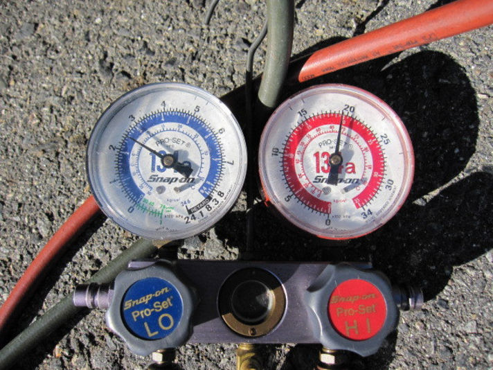 写真はエアコンのガス漏れなどをチェックしているところです。