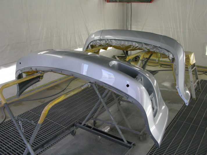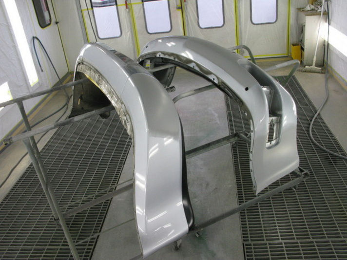 バンパーなどボディと違う素材の色を合わせるのはまさに職人技ですね。