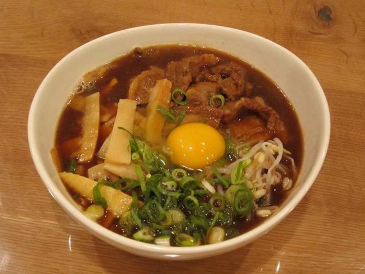 右の写真 ちゃんと生卵も落として完成です! まず麺・・・ちょうどいい細さと長さです スープの色は濃く、醤油辛そうな見た目とはちがってコクのあるあっさりとした味です とんこつ醤油に魚介の出汁が入っているのかなと思います おいしいです・・・確かに全開徳島で食べたものとは別物です