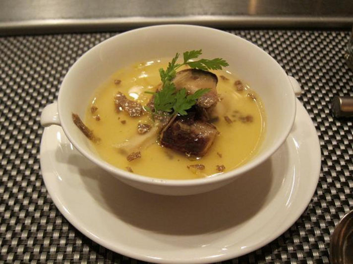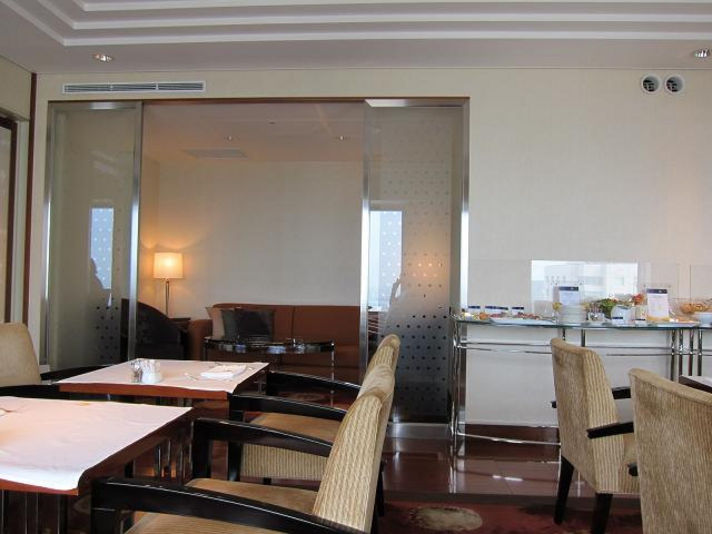 前後の料理になりますが、最初は左の写真の三種のタルタルです。 真ん中の写真はフォアグラの茶わん蒸し、トリフがけです。 贅沢・・・ 目の前でフォアグラを焼き、茶わん蒸しにのせ、目いっぱいのトリフをかけていただきます。 右の写真は今回の ある意味目玉・・・32階のラウンジのショットです。 33階と32階に泊まったかただけがつかえるラウンジです。 ここで朝食、アフタヌーンティー、軽く食前酒など無料ですよ。 是非ともクレヨンポルシェオーナーは結婚記念日か、奥さんの誕生日にはサプライズで計画してはいかがですか?