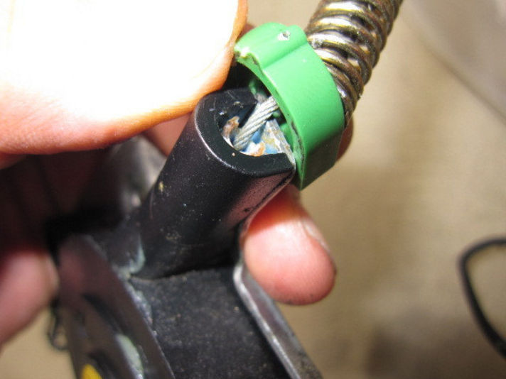 右の写真は不具合箇所のアップです。こちらが破損していたためウィンドウの下がりがおかしくなっていました。新しい部品と交換してレギュレーターの取り付け位置を調整して完了です。