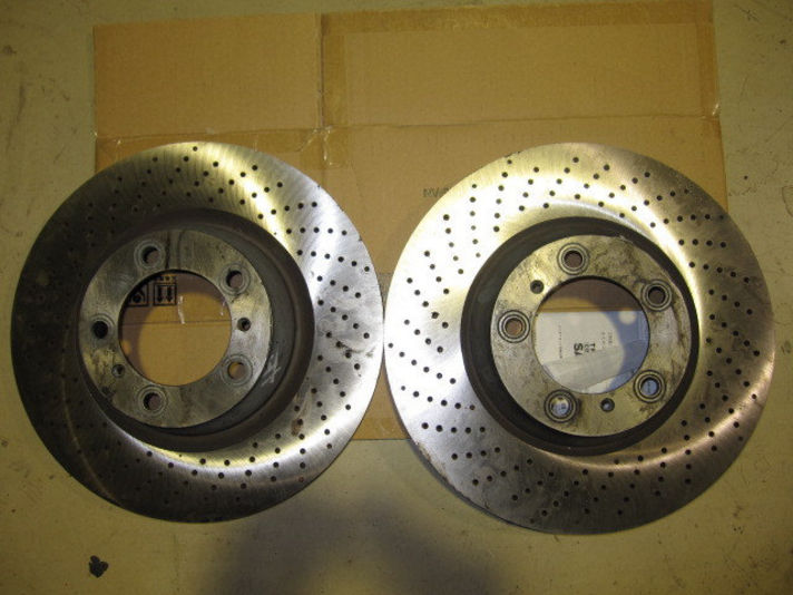 右の写真、ブレーキローターを研磨した前後ローターです。こちらを取り付け、ブレーキパッドを交換します。