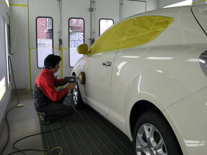 マスキングを施したら、電動バフによる磨き作業です。