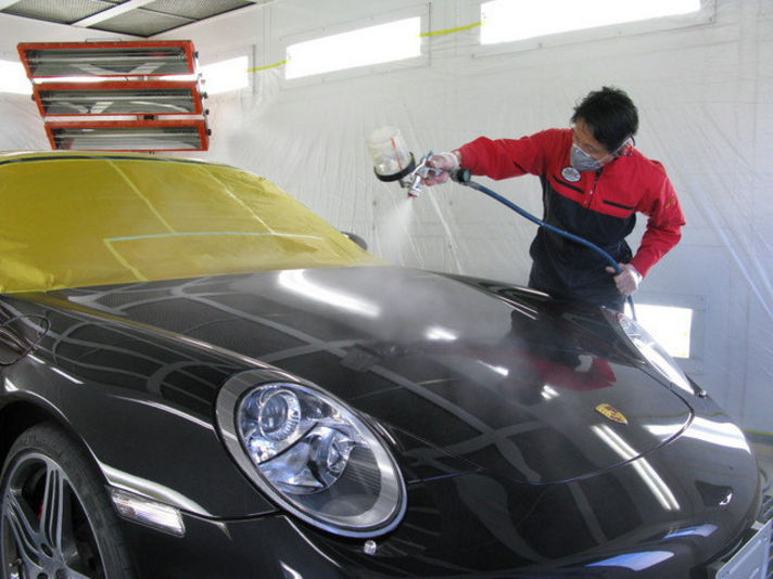 磨き作業が完了致しましたので、ガラスコーティング剤の吹き付け作業に掛かります。