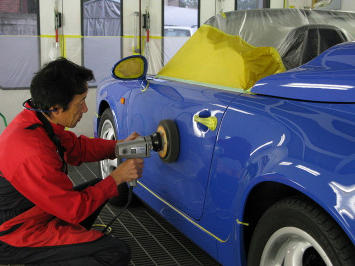 電動バフを用いましてボディを磨いていきます。