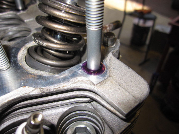 漏れていたところのカムハウジングを止めているボルトを抜き取り撃ちかえてシールを撃ちます 写真で解るようにボルトの高さなども合していきます