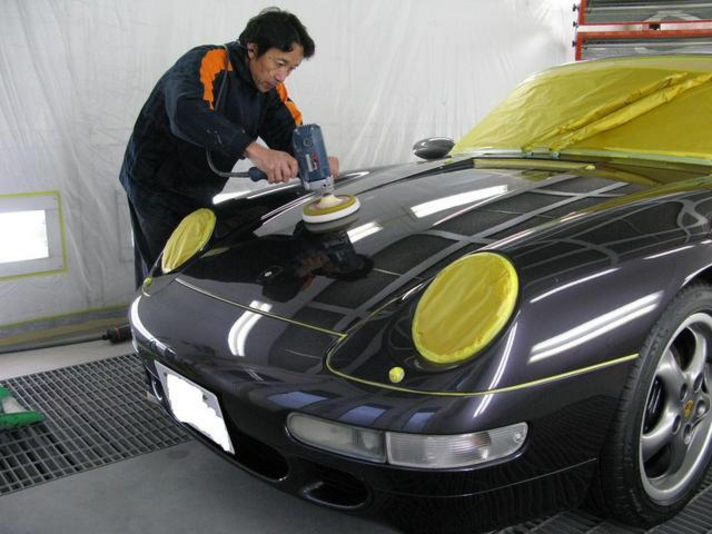 数種類のスポンジバフとコンパウンドを使い分けウォータースポットなど消していきます。塗装の状態を確認しながら作業を進めます。