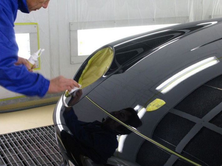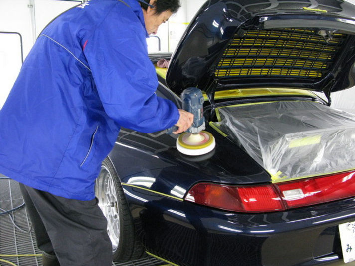 マスキング作業が完了致しましたので、電動バフによる磨き作業に取り掛かります。