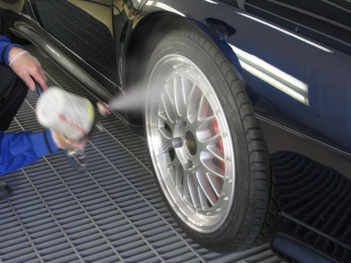 ホイールも同様に吹き付ける事で、ブレーキダストなどの汚れが付き難くなります。