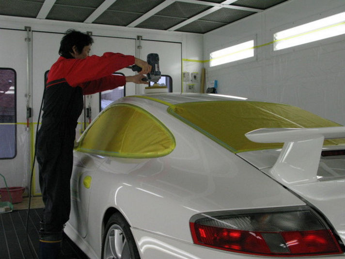 マスキングが出来上がりましたので、電動バフで磨いていきます。