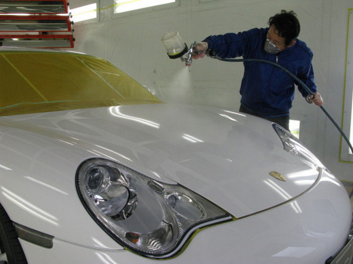 磨き上がったら、ガラスコーティング剤を吹き付けていきます。