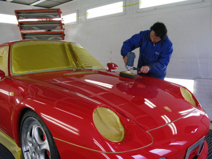 マスキングが出来上がりましたら、電動バフで磨き上げていきます。