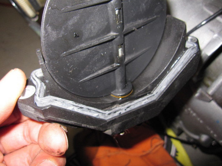真ん中の写真、フラップを取り外した状態です。見て頂くと分かっていただくと思いますが、ガスケット部劣化によりオイルが漏れて来ていましたので、こちらの交換です。