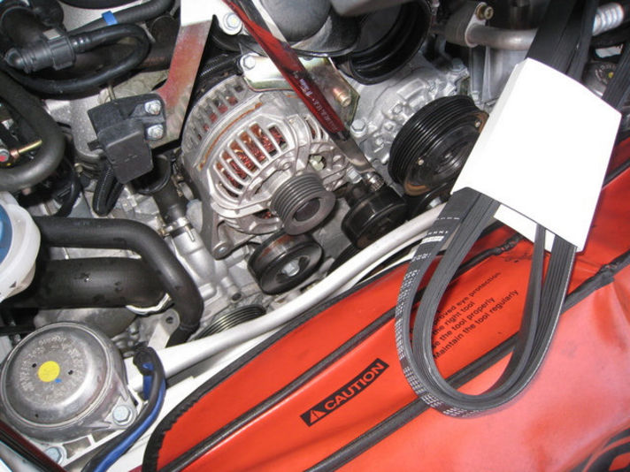 近代的な、シングルのVリブドベルトです、回転して作動させるすべての機器に必要なベルトになります。切れてしまうと・・・パワステアリング不能・発電不能・冷却不能になり、大変なことになります。