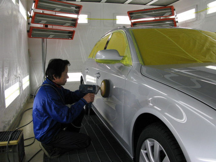マスキングが出来上がりましたので、電動バフで磨いていきます。