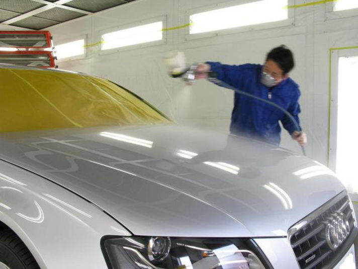 磨き上がったら、ガラスコーティング剤を吹き付けていきます。