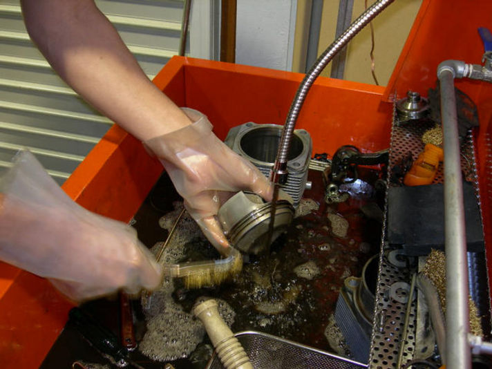 写真はピストンシリンダーのガスケットを入れるところの洗浄