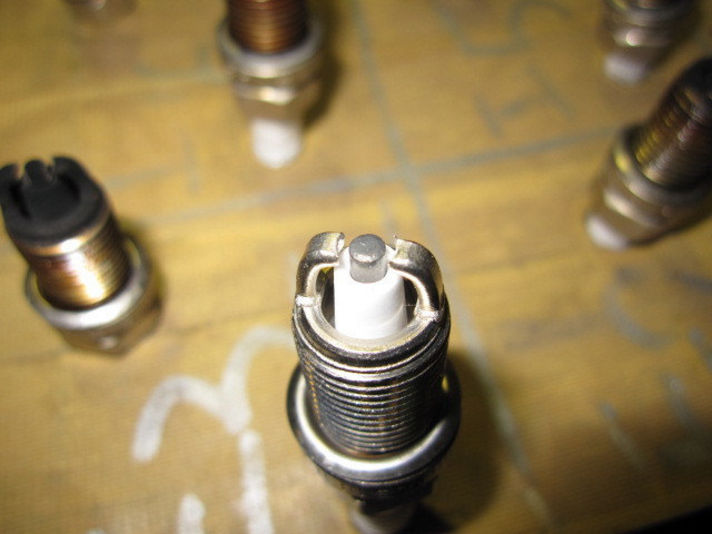 スパークプラグ交換です。 左の写真リアバンパー、インタークーラーを取り外すとスパークプラグに アクセス出来るようになります。 真中の写真取り外したスパークプラグです。右の写真の新品のスパークプラグと見比べていただくと走行距離が少なくても定期的に交換することが大事だと思っていただけると思います。 新しいスパークプラグを取り付けて完了です。 又、他にバンパーを外しての作業があるため外したまま作業します。