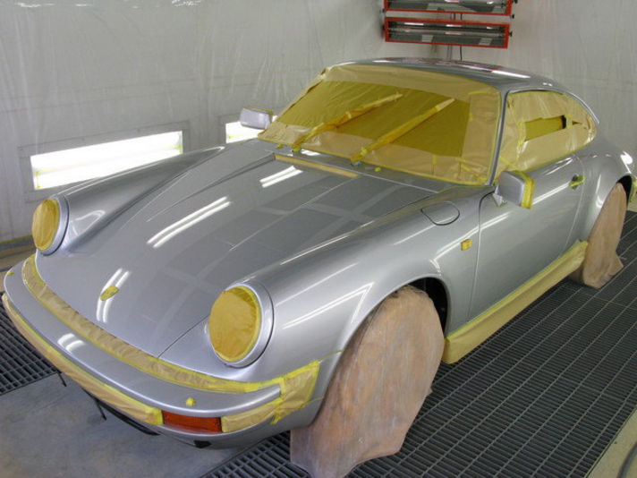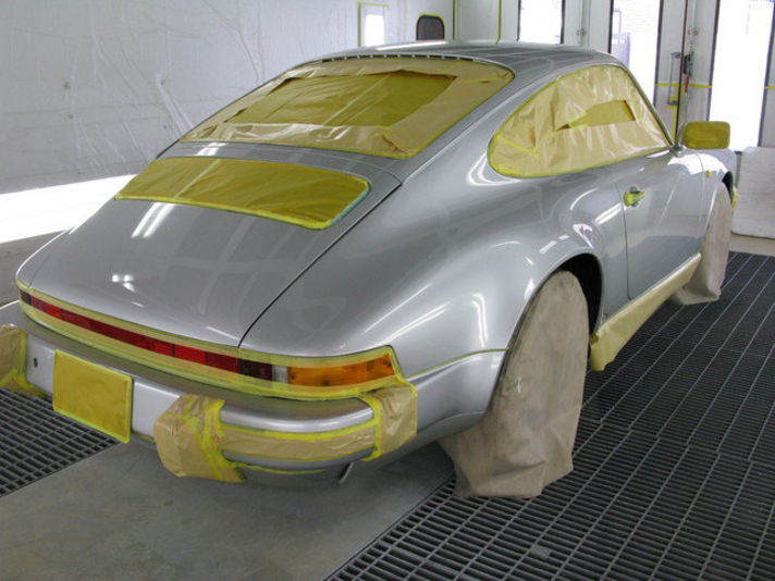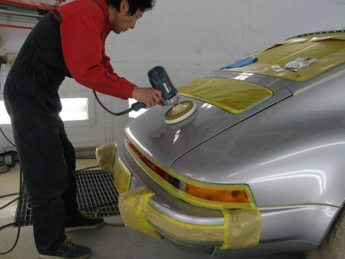 マスキング施工作業が完了いたしましたので、電動バフで磨いていきます。