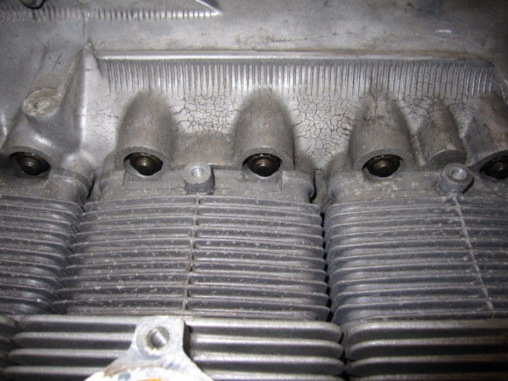 今回、車両からの確認ではカムハウジング付近からのオイル漏れはわかっていましたがエンジン単体にしたことによりスルーボルト部分(クランクケース両側を通しているボルト)からオイル漏れが確認できましたので今回この部分まで作業します。