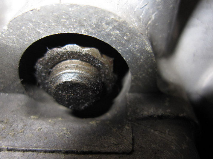 写真はスルーボルト部分のものです。漏れは少ないですが今後ひどくなる可能性がある箇所ですのでオイル漏れ修理します。