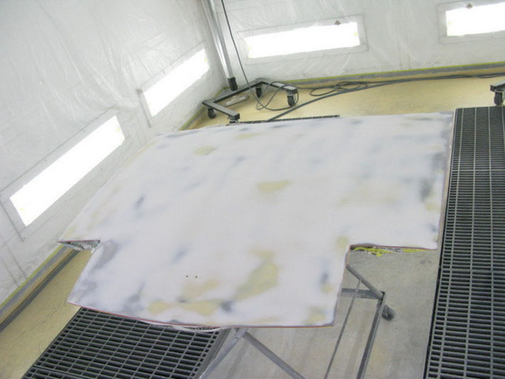 さらにサフェーサーを吹き付け、表面を平らにし塗料の食い付きを良くします。