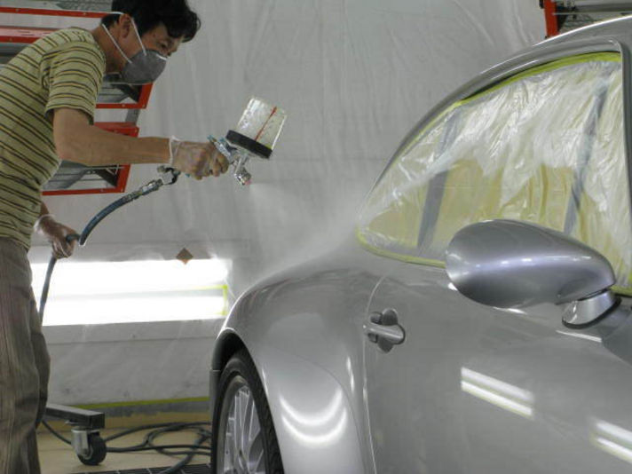 ガラスコーティング剤の吹き付け作業に掛かります。