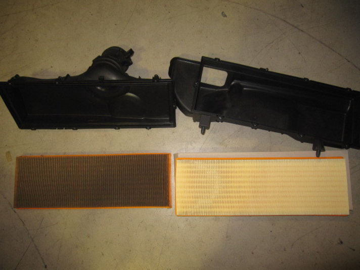 右の写真、エアクリーナーです。新しいものと比べると汚れているのがわかっていただけると思います。