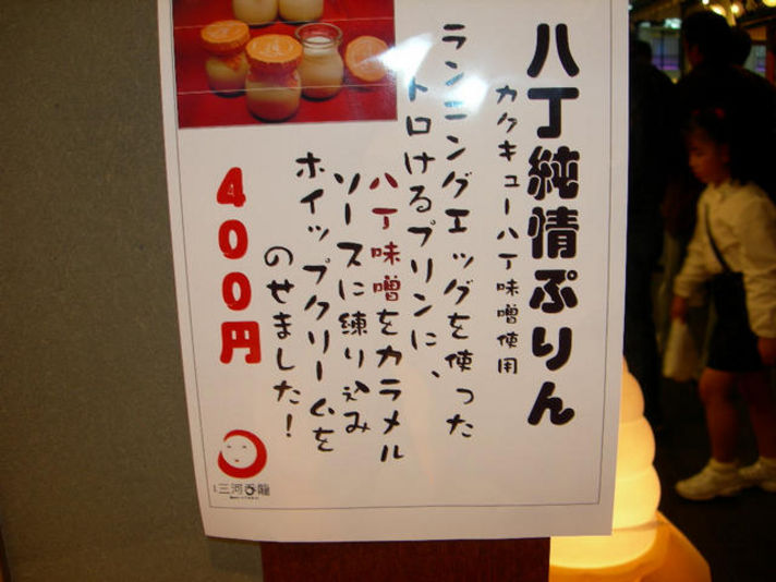 先日のポルシェパレードの帰り少し時間が取れたので 名古屋に新しく開設した中部国際空港を見学に行ってきました 場所は鈴鹿サーキットから一時間はかからないぐらいのところです (知多半島) 私の考える所 関西の関空と比べ施設の充実感と設計の新しさが すごく解かる空港です 今回この空港で(名古屋と言えば味噌)味噌をプリンのカラメルソースに加えた プリンを発見 自宅に帰り食べてみた所 以外にいける味です 濃いメのプリンの味に 負けない味噌の入ったカラメルソース中々 上に少しのっている生クリームが いい感じのプリンいです 400円少し高い?