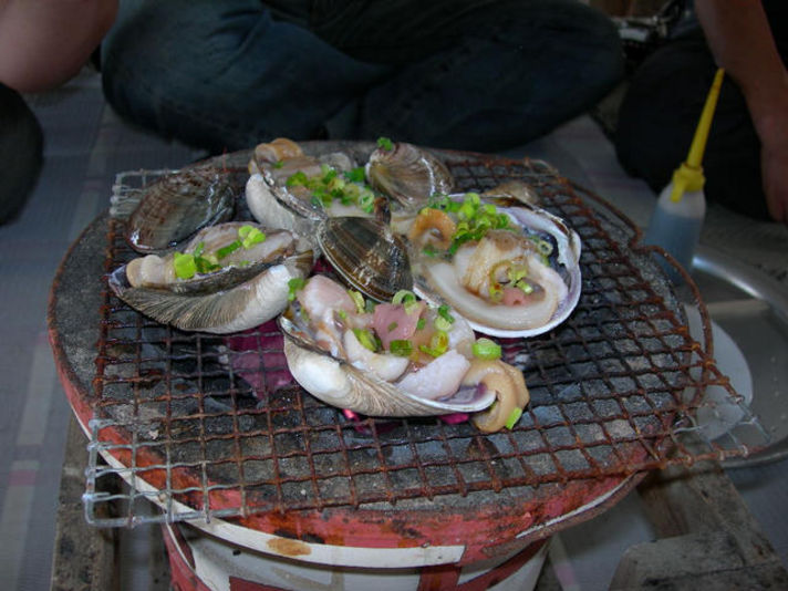 貝をいただきました 一皿2000円(大アサリ アサリ ハマグリ)タレはみりん醤油です