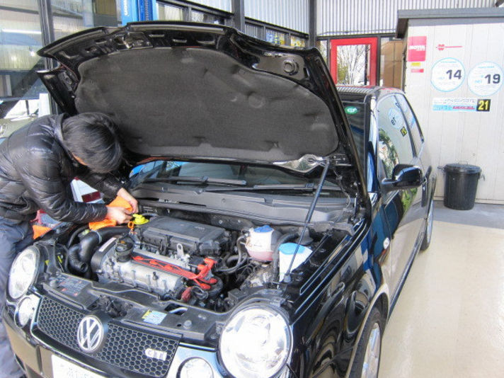 真中の写真 クレヨンポルシェオーナーの息子さんの GT1車検整備をしています 番頭伊藤
