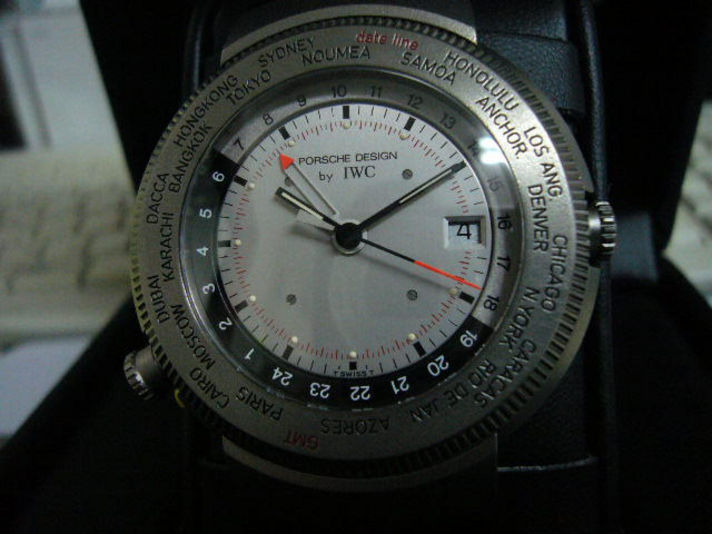 前回の身に付けるポルシェ6でお話をしていたモデルが今回紹介するモデルです 1994年ポルシェデザインとIWCが最後に作り上げたモデルが写真の ワールド.タイムゾーンです 世界24都市の時間が解り アラーム 照明 防水とこの当時のあらゆる時計の機能を凝縮したチタンモデルです このあとしばらくポルシェデザインの時計を発売せず 1998年にあらたに手を組んだメイカーが現在のエテルナ社です 私の独自の考えでずが 94年前後ポルシェ社は身売りの話も出ていました(アウディー社が筆頭株主?) 98年は911がタイプ996(水冷)とその前の年97年にボクスターを発売しアメリカで爆発的に売れ高利益を上げ 時計事業に戻ってきたと思われます いまやワーゲン社の筆頭株主となっています 時代は10年足らずで逆転してしまいます |