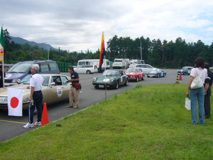 途中少し雨に見舞われたものの56台中(おしくも一台エンジントラブルに見舞われましたが)事故も無く55台完走いたしました スタート前の全員の写真に写っている車が 今回一番古い車で1929年製のフランスのSALMSON GS-8です
