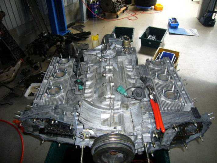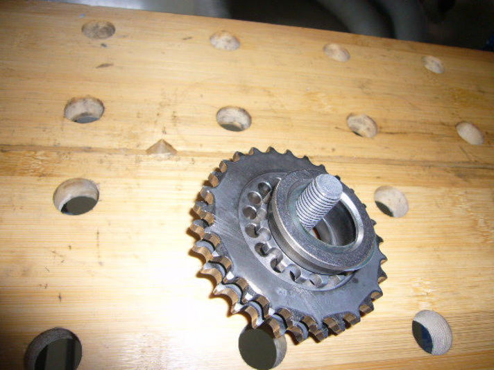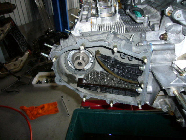 写真は現時点の状況で これから左バンクのカムにギヤを付けるところです