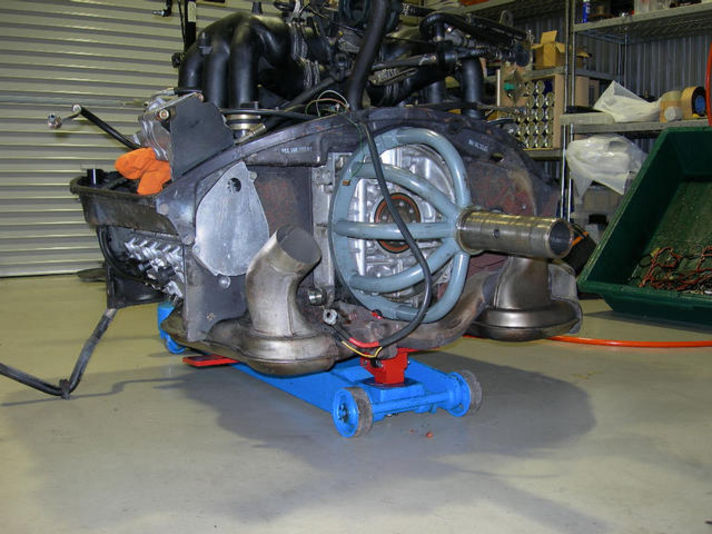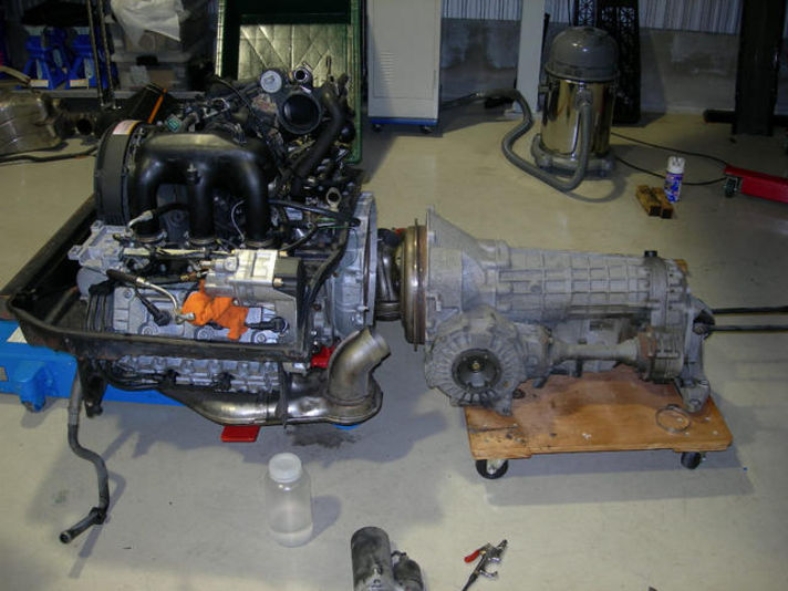 エンジンもエンジンスタンドから下ろされ、ティプトロユニットに「合体」です。間もなくボディへと搭載される訳です。