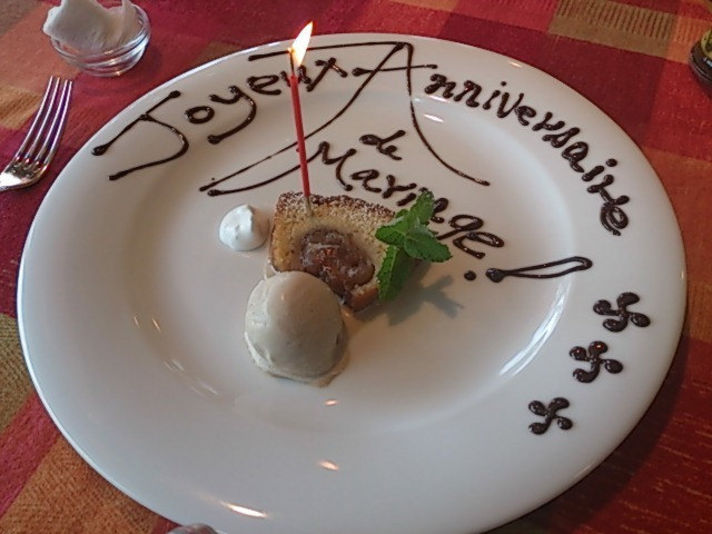 二年ぶりに行ったのに私たちの結婚記念日が近いこともあり右の写真のデザートにメッセージ..........