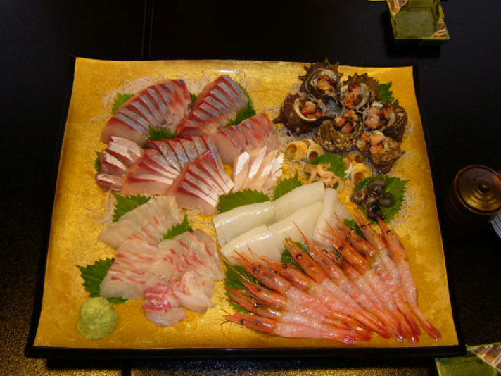 目指すは 写真の海岸線にな在るお食事どころです 写真のおつくりの盛り合わせ6人前6000円税込み 中々美味しくおおもりです お勧めはかれいの煮付け800円で