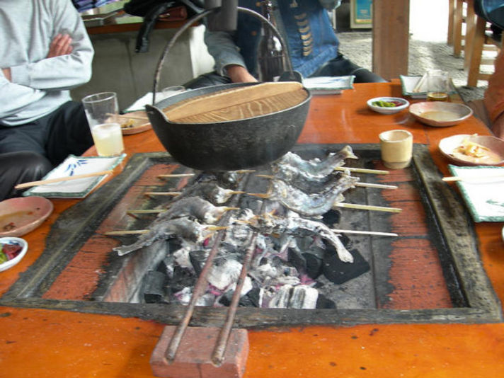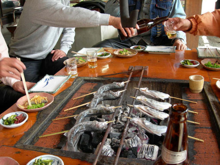 明日は日曜日ドライブに出かけてみてはいかがですか 関西 中部地区なら日帰りで行ける.私のお勧めスポット紹介いたします 美味しい物を食べ 綺麗な空気を吸い 綺麗な景色を見る贅沢三昧味わえる? 場所は中央道園原インターで下車 名神豊中から約四時間です 朝八時に出るとお昼には付きます.お勧めの昼ごはん青木屋場所は園原インターを降りてくるまで10分料理の内容は炭焼きでイワナ アマゴ 五平餅を自分で焼き食べるコースです お値段は一番リーズナブルな物2100円のコースで十分です 今言った焼き物にアマゴ汁とアマゴの南蛮漬けが付きます この店の特徴は池があり その場で魚を釣り焼いて食べられます (注意つった物すべて買取です)この近くに暮白の滝が在りここから見える今の時期の紅葉は綺麗と思います 細かな場所などのホームページリンクしましたので 確かめて見てください このホームページ今の天気がライブで見れますので出かける寸前にサイド確認 青木屋さんは土日は予約して行くのがベストかも