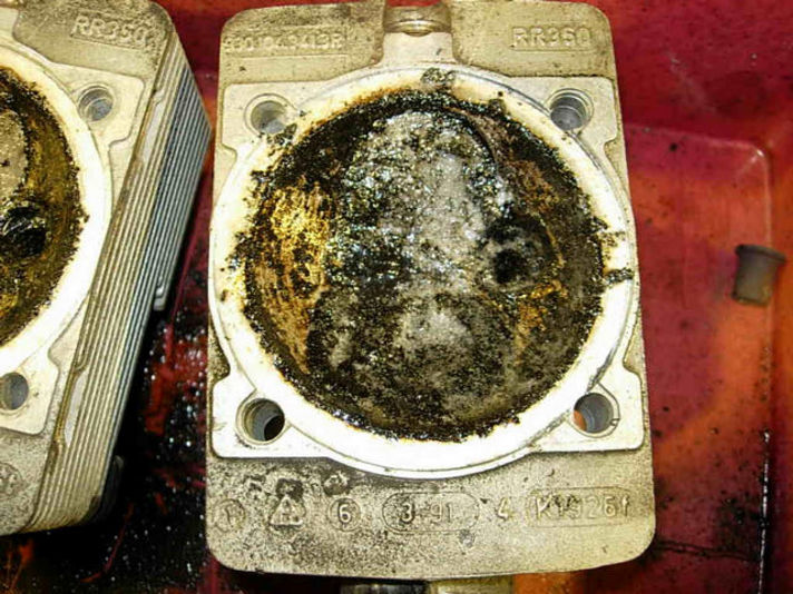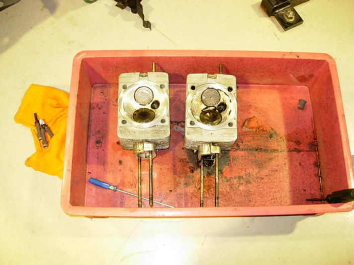又順番に、パーツの洗い作業。丹念に、ガスケットカスやカーボンを取り除いていきます。綺麗なアルミ地肌が眩しいですね!
